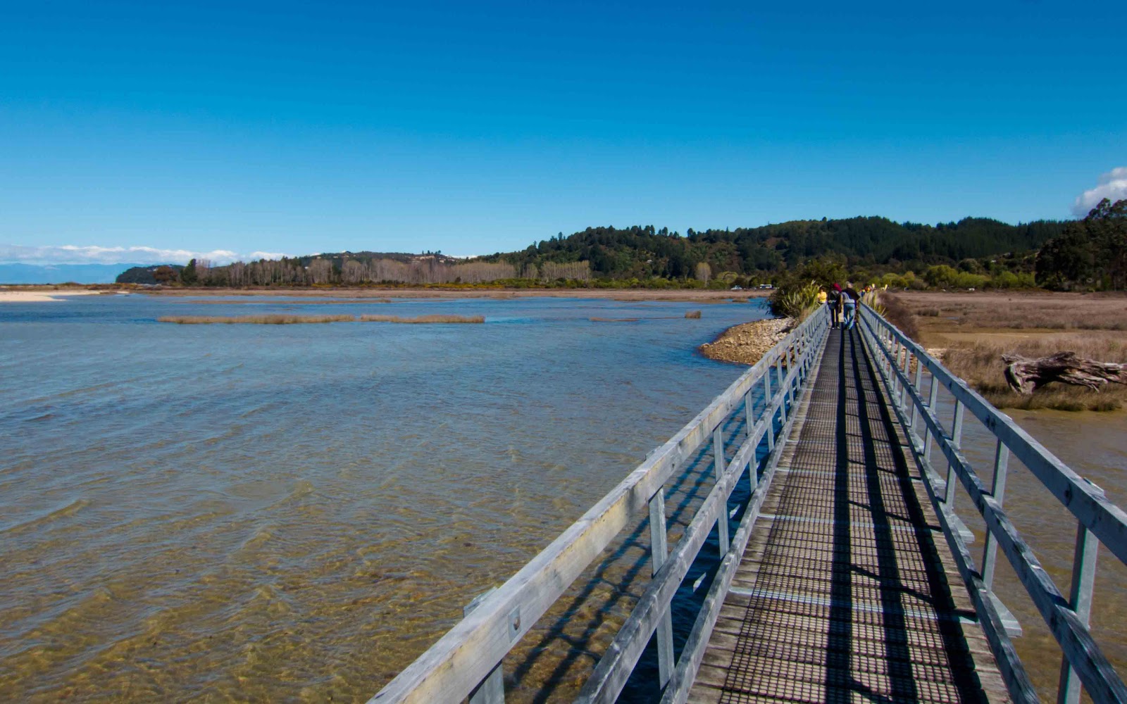 Then onwards towards Mapua wharf, a magnificent sight on such a gorgeous day. We then continue on to Abel Tasman Park, and ventured in a short way in the midst of a big race! We had to wait at bridges for entrants to run across, and even had our photo taken!!